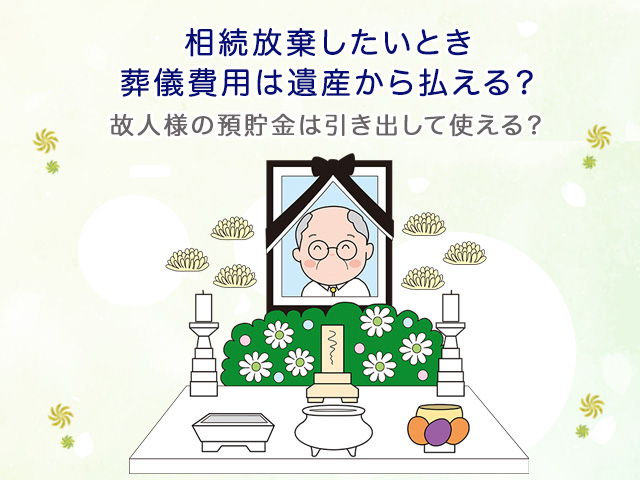 相続放棄したいとき葬儀費用は遺産から払える?故人様の預貯金は引き出して使える?