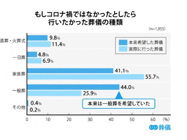 しかし、今後もこの傾向が続くかは不確かです。ここで、株式会社鎌倉新書が2022年に調査した「もしコロナ禍ではなかったとしたら行いたかった葬儀の種類」をご紹介します。