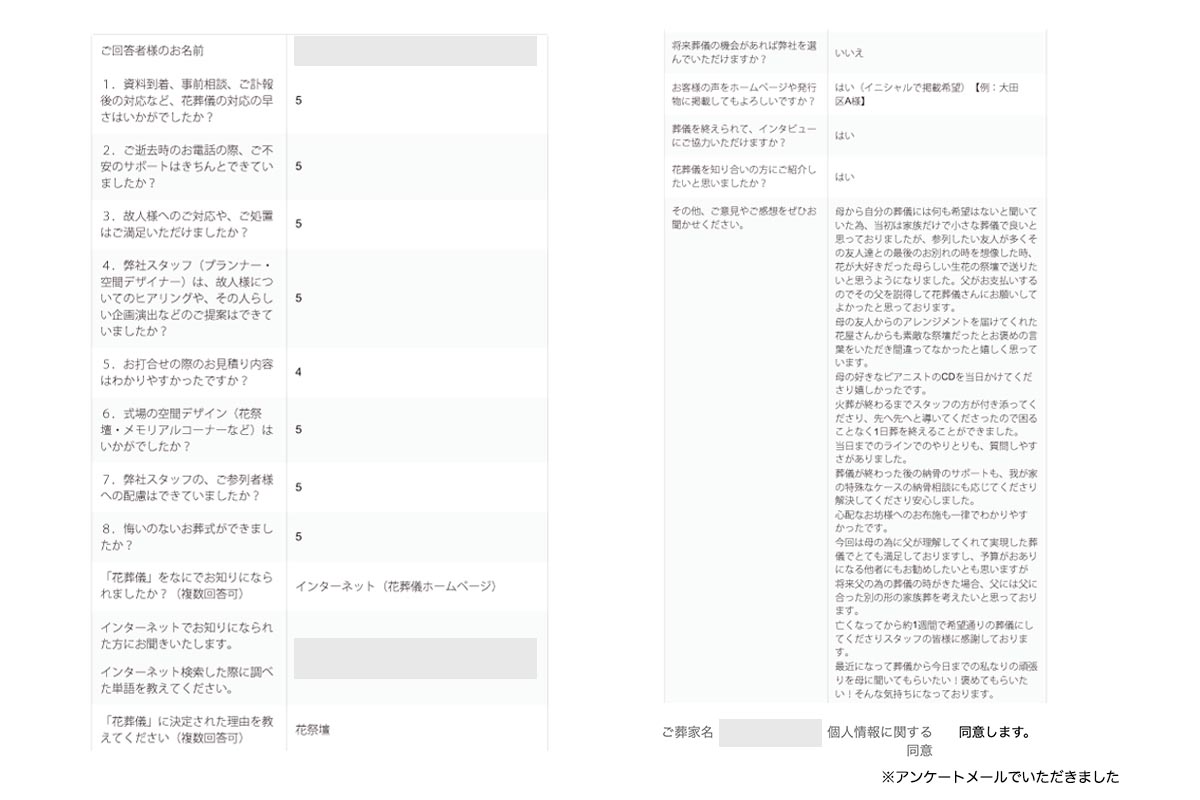 華やかで美しい葬儀をしていただきありがとうございました。