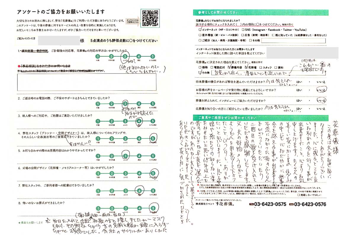 この度は母の葬儀に際し大変お世話になりました。無事に当日を迎えられたのは花葬儀さんのお陰だと思っています。