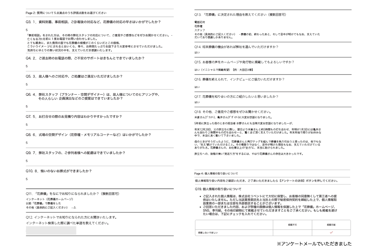 参列者の方々も「すてきなお葬式」「初めてこんなきれいな葬儀に参加した」と感想をいってくれました。