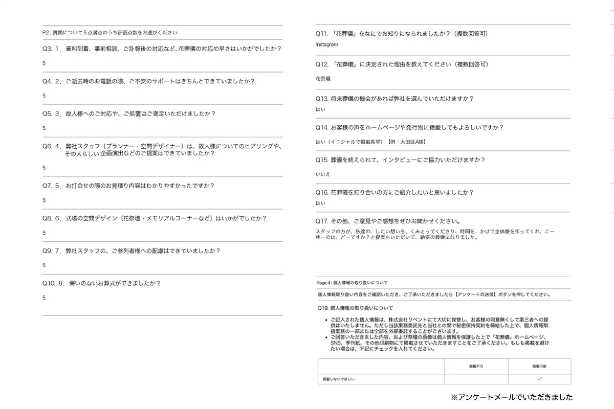 色々な希望も受け入れくださりそれ以上に叶えてくださいましたし、花祭壇も実物はほんとうに素晴らしかったです。