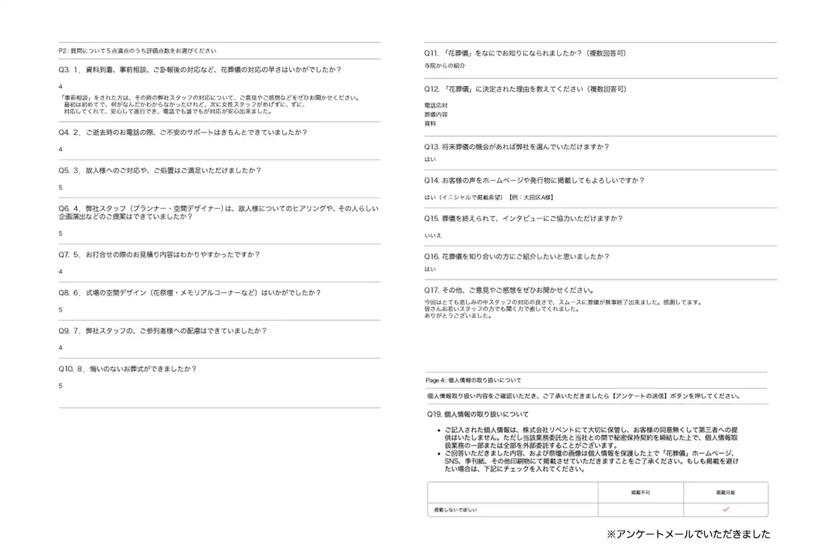 この度は美しい葬儀を執り行っていただきまして、ありがとうございました。