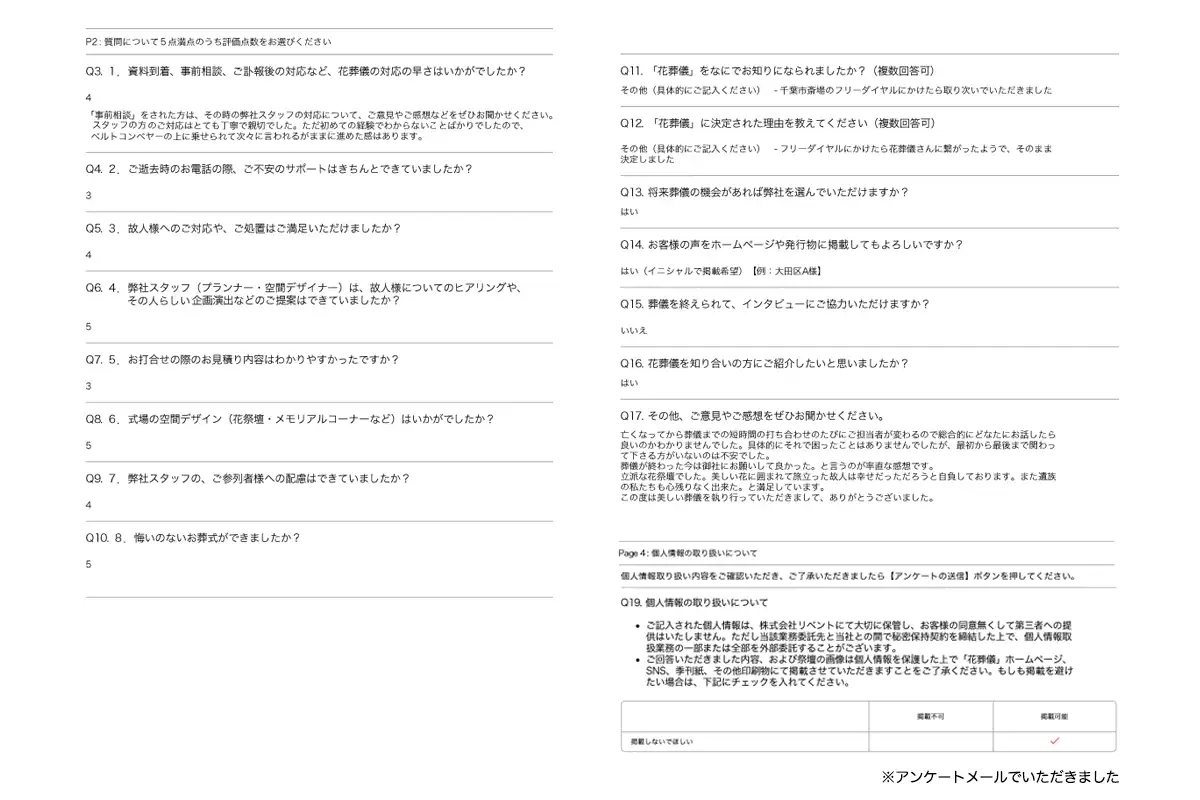 この度は美しい葬儀を執り行っていただきまして、ありがとうございました。